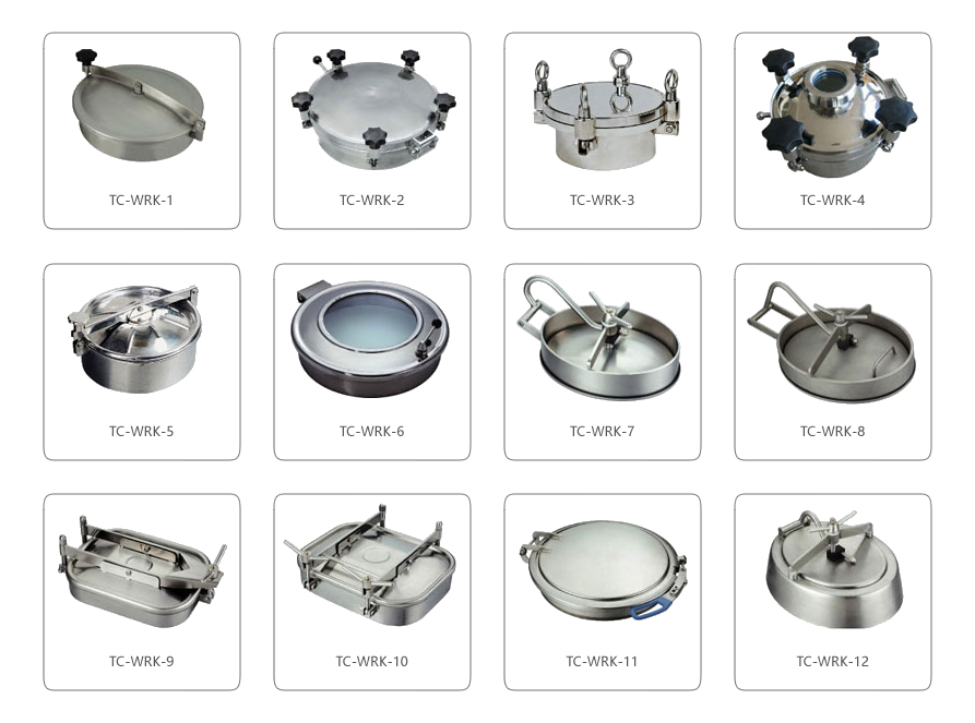 結(jié)構(gòu)特點(diǎn):衛(wèi)生級(jí)人孔采用快開(kāi)式結(jié)構(gòu),開(kāi)啟方便、安全, 外形實(shí)用美觀;