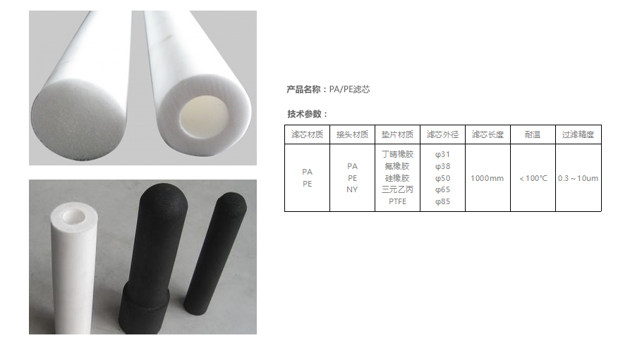 PA/PE燒結(jié)濾芯采用超高分子量為300萬以上的顆粒燒結(jié),經(jīng)篩分后裝入內(nèi)外鏡面的模具中加壓帶壓力放在燒結(jié)爐中,在一定的溫度下,一定的燒結(jié)保溫時(shí)間,出爐、泠卻、出膜制造而成。濾芯具有結(jié)構(gòu)緊湊、結(jié)實(shí)、質(zhì)輕、耐壓、無毒無味、孔徑分布均勻、對酸堿溶劑具有良好的抗腐蝕性能等特點(diǎn)。用于大型水處理設(shè)備,可采用自動(dòng)或手動(dòng)反沖脫渣法,固體微?;厥湛刹捎酶沙鲈?,不需經(jīng)常更換濾芯,可自動(dòng)化操作。