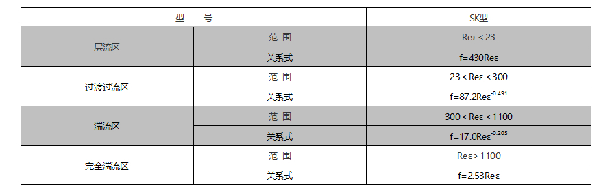 SK型的雷諾數(shù)Reε和磨擦系數(shù)f的關(guān)系