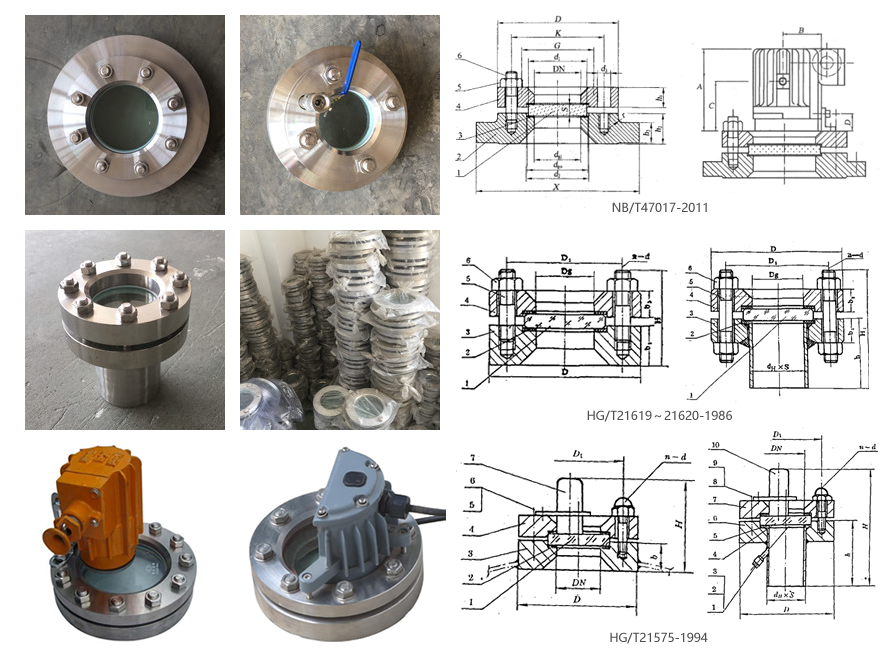 設(shè)備視鏡又也稱壓力容器視鏡、組合式視鏡,通常安裝在食品罐、化工容器或塔器上。適用于各種溫度高、腐蝕性強(qiáng)、易中毒、危險(xiǎn)性較大、易結(jié)晶的介質(zhì),觀察其反應(yīng)情況,以保證正常安全生產(chǎn)。該系列產(chǎn)品均按:NB/T47017-2011、HG/T21575-1994、HG/T21619~21620-1986等標(biāo)準(zhǔn)生產(chǎn)。針對(duì)一些具有粘附性的介質(zhì),視鏡可以增加刮刀(刮刀視鏡)。