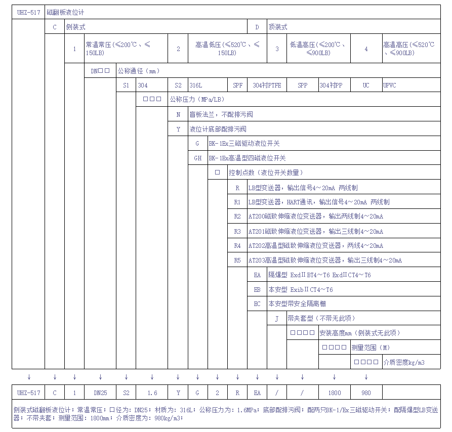 磁性翻柱液位計適用于工藝操作壓力≤900LB,工藝溫度≤520℃的液體介質(zhì)的液位測量,全過程測量無盲區(qū),顯示醒目,指示直觀,且測量范圍大,可選配三磁液位開關,實現(xiàn)液位或界位上下限報警和控制,也可配液位變送器,可將液位、界位信號轉(zhuǎn)換成4~20mADC標準信號。